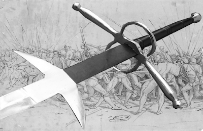 Traía una grande alabarda, que partía por medio al francés que una vez alcanzaba