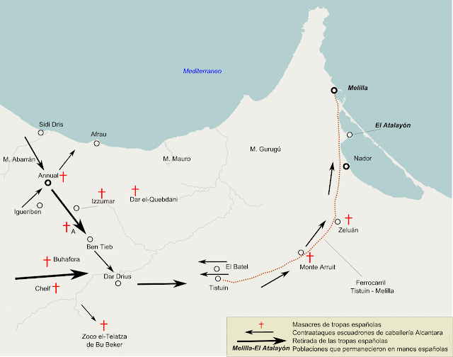 Ya en 1921, 10 años después del inicio de las hostilidades, las tribus rifeñas rebeldes organizadas y dirigidas por el político Abd el-Krim, protagonizaron lo que hoy conocemos como el Desastre de Annual. En mayo de 1921, el grueso del ejército español estaba en el campamento base instalado en la localidad de Annual. Entre Melilla y este campamento había tres plazas fuertes separadas unos 31 km entre sí, y en torno a él un anillo formado por otros pequeños fortines, cada uno con una guarnición que variaba entre 100 y 200 soldados.