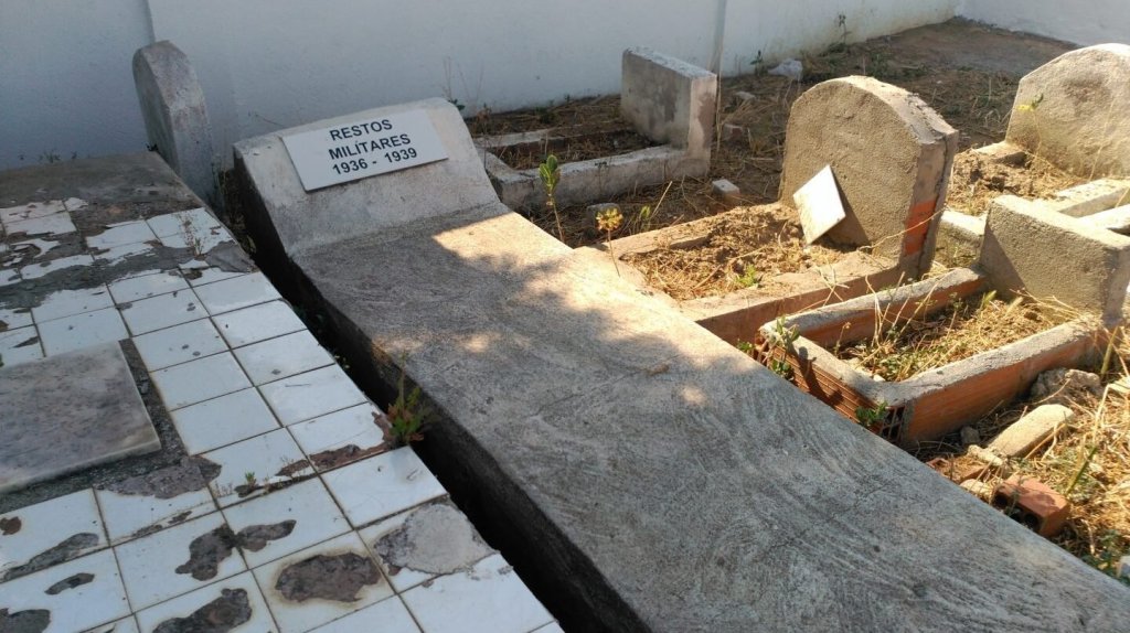 También encontramos soldados caídos en el único cementerio musulmán de Madrid. Apilados en una fosa común, reclamados por nadie, sin más distinción que la que se aprecia en la imagen sobre estas líneas, yacen los cuerpos de parte de los moros de Franco muertos, en las batallas de Brunete y de Ciudad Universitaria.