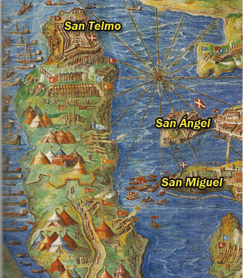Los turcos tardaron varios días en desembarcar su ejército, con gran estrépito de clarines, trompetas y atabales. La Valette había decidido que era mejor táctica esperar en los fortines, y desgastar poco a poco a los otomanos con salidas fugaces de caballería, en espera de la llegada de refuerzos. Así, el 24 de mayo comenzaron a atrincherarse en torno al pequeño fuerte, instalando 21 cañones de batida y empezando de inmediato el bombardeo. El lunes 28, los cañones turcos comenzaron a escupir sus proyectiles de fuego contra las defensas de San Telmo, la Ciudad Vieja, el Burgo y San Miguel.