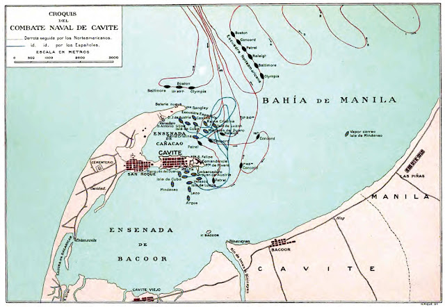 La escuadra de Dewey llegó la noche del 30 de abril a Súbic. Al no encontrar allí a Montojo, entró en la bahía de Manila sin que los cañones de la entrada hiciesen apenas un par de disparos contra él, sin ningún efecto, y llegó frente a la ciudad. Al no ver allí a la escuadra española, se dirigió hacia Cavite.